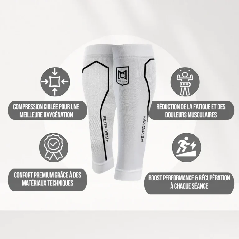 Grâce à sa compression ciblée, le manchon PERFORM+ favorise un meilleur retour veineux. Résultat : les muscles sont mieux oxygénés, les toxines éliminées plus rapidement. Que ce soit pendant l’effort ou en phase de récupération, vos jambes restent plus légères, plus dynamiques.